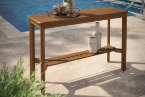 Our customer’s love wooden outdoor furniture and many choose IPE. Jensen Outdoor’s beautiful line captures traditional cottage styling with a deep chocolate–brown hardwood. Sturdily built by fine craftsmen, IPE chairs, benches, tables and accent selections can result in exquisite combinations of function and beauty. Mix it up and choose from one of the largest selections in the area of rockers, hi-tables, chaises and more and all with minimal upkeep.